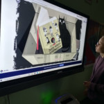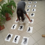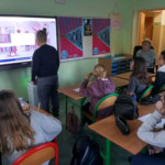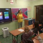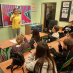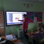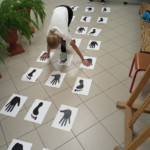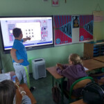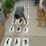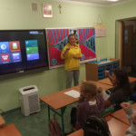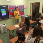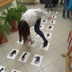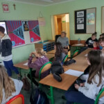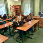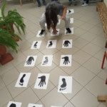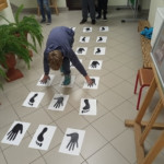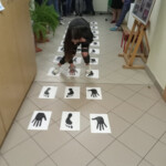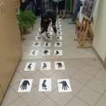 Po zakończeniu filmu odbyła się druga część warsztatów języka migowego, tym razem pod hasłem w ŚWIECIE CISZY. Prowadząca, Sabina Krawczyk, uczennica klasy 8 jest bardzo dobrym nauczycielem a i koledzy, i koleżanki chętnie poddają się nauce. Jak jest to wskazane, miała miejsce diagnoza ,, na wejściu’’. Wypadła bardzo dobrze, mimo, że w tym roku do kursu przystąpili uczniowie klasy 5. Ale dla nich język migowy nie jest nowością . Już migali będąc w zerówce, gdzie została wprowadzona Innowacja Pedagogiczna pt. „MÓWIĄCE PALUSZKI” – program nauczania Polskiego Języka Migowego dla dzieci słyszących w wieku przedszkolnym. Jej celem było poszerzenie świadomości językowych uczniów, rozbudzenie wrażliwości i otwartości na osoby niesłyszące, wspomaganie nauki pisania, czytania, liczenia i rozwijanie umiejętności logicznego myślenia. A także usprawnienie pracy rąk i ogólnej motoryki ciała poprzez konieczność przekazywania znaków za pomocą gestów. Dlatego po latach przerwy miło im było przypomnieć sobie ten sposób porozumiewania się. Zasób słownictwa został rozszerzony o nazwy owoców, warzyw, dni tygodnia czy pojęcia, które dotyczyły nocnego spotkania i biblioteki. Na zakończenie spotkania można było wykazać się sprawnością i koordynacją ruchową w zabawie RĘCE- STOPY.