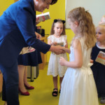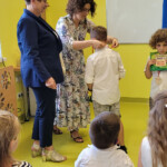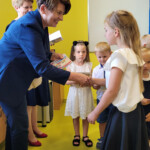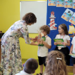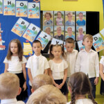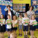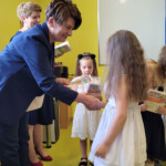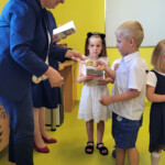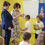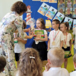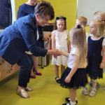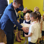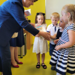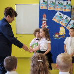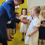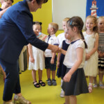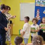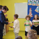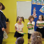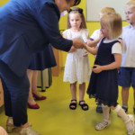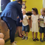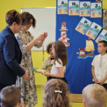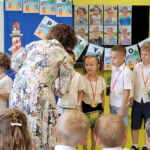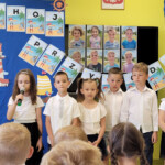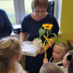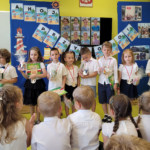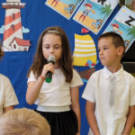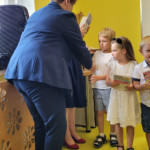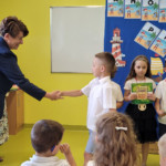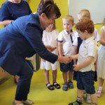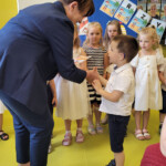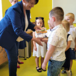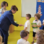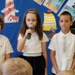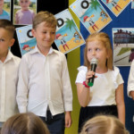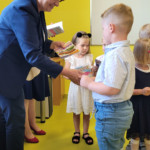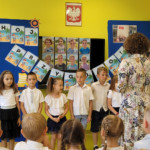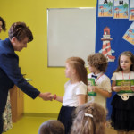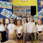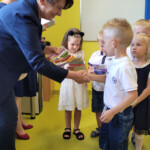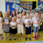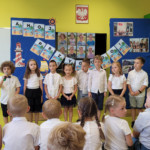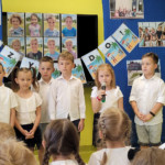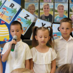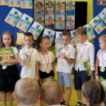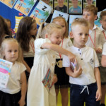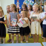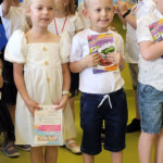 Pożegnaliśmy ośmioro najstarszych przedszkolaków, którzy w przyszłym roku szkolnym zasiądą w ławkach szkoły podstawowej, jako uczniowie klasy pierwszej. Są to: Ignaś, Nadia, Mikołaj, Igor, Dagmara, Borys, Piotrek i Weronika. Dzieci otrzymały dyplom ukończenia przedszkola, przepiękne imienne medale, pamiątkowe kubki z podobiznami dzieci wypełnione słodyczami wraz z kolorową „cząstką przedszkola” oraz książkę „Elementarz Młodego Patrioty, czyli Kocham Polskę”.