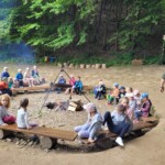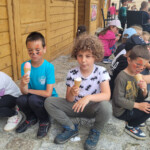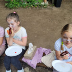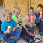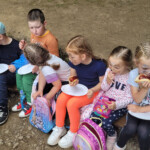 Po powrocie na polanę na dzieci czekały animacje – malowanie buziek, tatuaże, warsztaty łucznicze oraz przepyszne kiełbaski. W drodze powrotnej nie mogło zabraknąć wizyty w lodziarni.