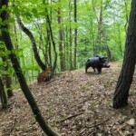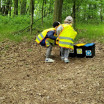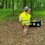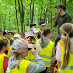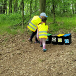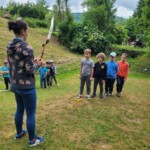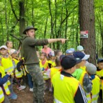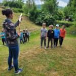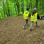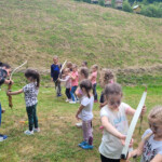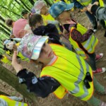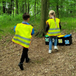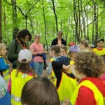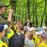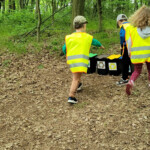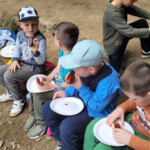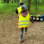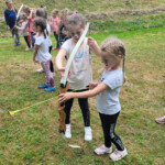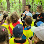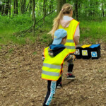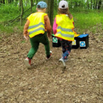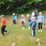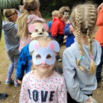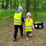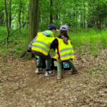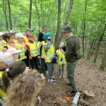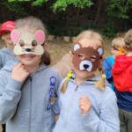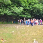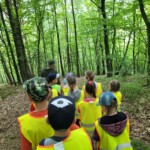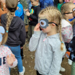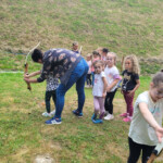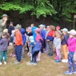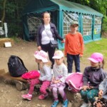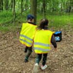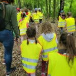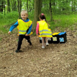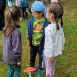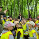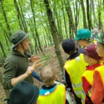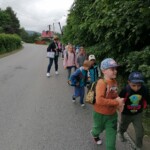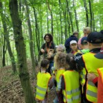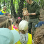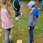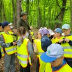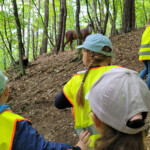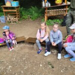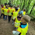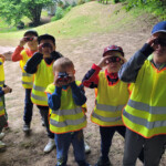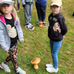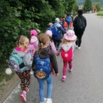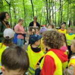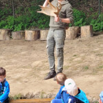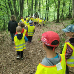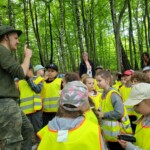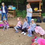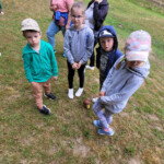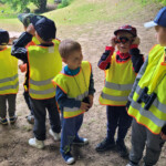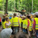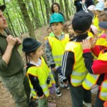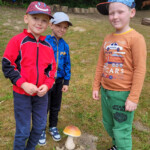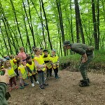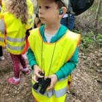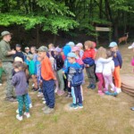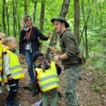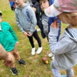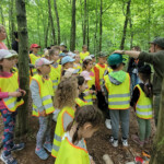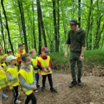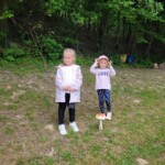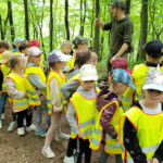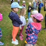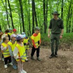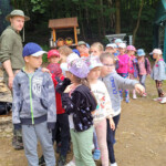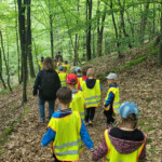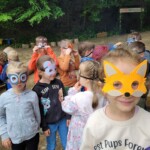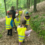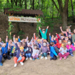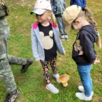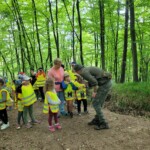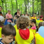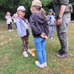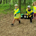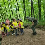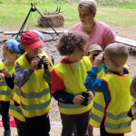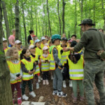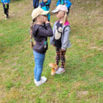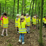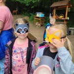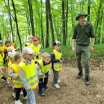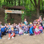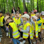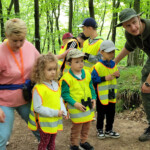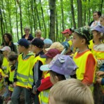 Już od samego początku czekało na dzieci mnóstwo ciekawych informacji o owadach i grzybach, ale też o czekających je zadaniach, za które miały zdobywać nagrody niespodzianki. Następnie po wspólnym zdjęciu w zwierzęcych maskach, dzieci założyły kamizelki, otrzymali lornetki, a Panie kompasy. Trasa prowadziła specjalnie przygotowaną leśną ścieżką, podczas której dzieci poznawały dzikie zwierzęta, słuchały ich odgłosów, odszukiwały tropy oraz dowiadywały się jak mieszkają. Na szczycie na dzieci czekało biegowe zadanie, ale poradziły sobie z nim znakomicie. Później dowiedziały się co nie co o leśnikach i ich pracy, a po rozwiązaniu zagadek otrzymaliśmy drzewko, któremu wspólnie nadaliśmy imię „Barbara”.